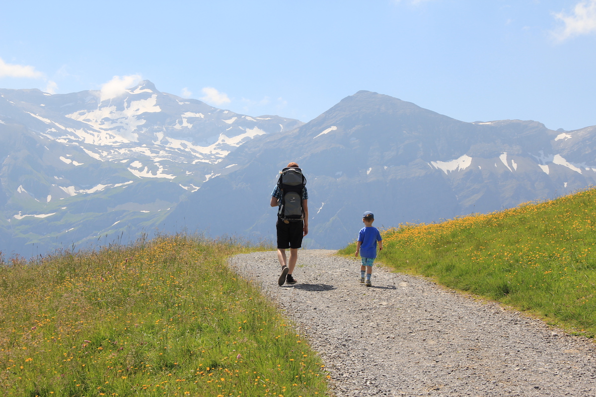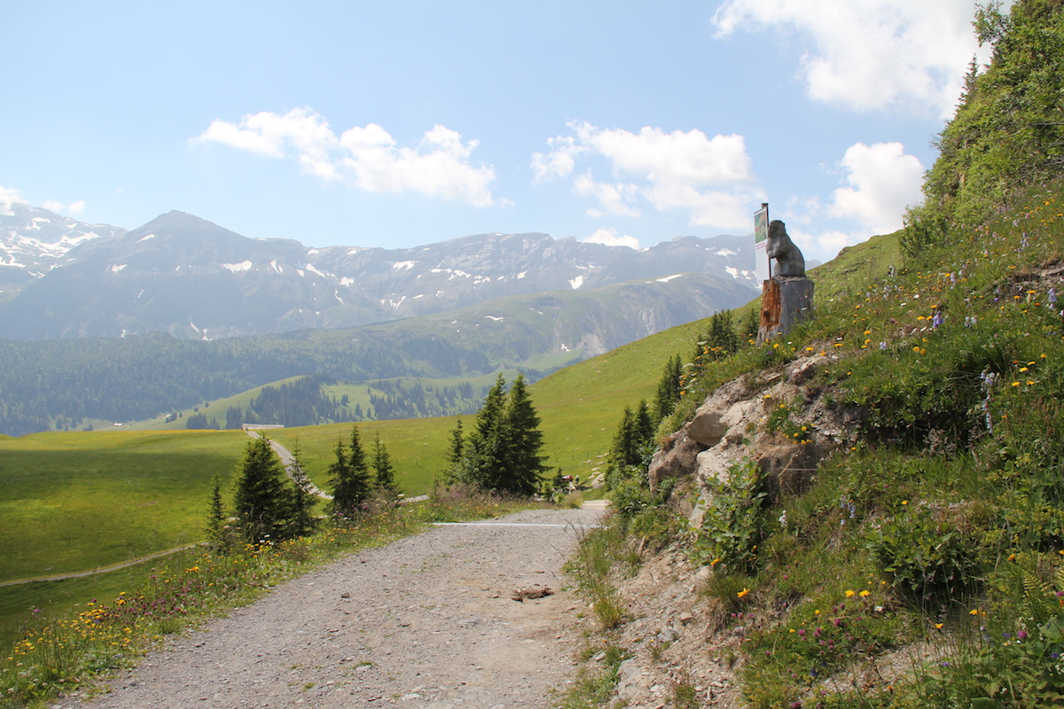 Lenk – und der Hausberg Betelberg-Leiterli – sind wahrlich neu für uns gewesen. Wir haben direkt am ersten Tag in Lenk einen Ausflug auf den Betelberg gemacht und sind den Murmeli-Trail mit den Kindern gewandert. Für Junior war es die erste Wanderung. Die Strecke war mit 3km und 300m talabwärts auf knapp 45 Minuten angesetzt. Wir haben ja bereits als wir in der Schweiz gelebt haben, festgestellt, dass wir eher „Genusswanderer“ sind und daher auch oft anhalten. Auf dem Weg findet man neben etlichen Informationen über die Murmeltiere und Spielplätzen für Kinder auch genügend Raum für schöne Aussichten. Der Weg ist die ganze Strecke unbewaldet und im Hochsommer sollte man daher an ausreichend Sonnenschutz denken.