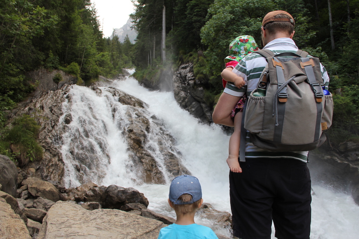 Direkt hinter der Leitplanke sieht man den Iffigenfall aus direkter Nähe und wir entschlossen uns sogar noch direkt runter zum Wasserfall zu laufen, wo er zu einem Fluss wird. Der Abstieg ist nicht weit und dauerte bei uns knapp 20 Minuten, weil wir auch ein wegen den Kindern langsamer laufen mussten.