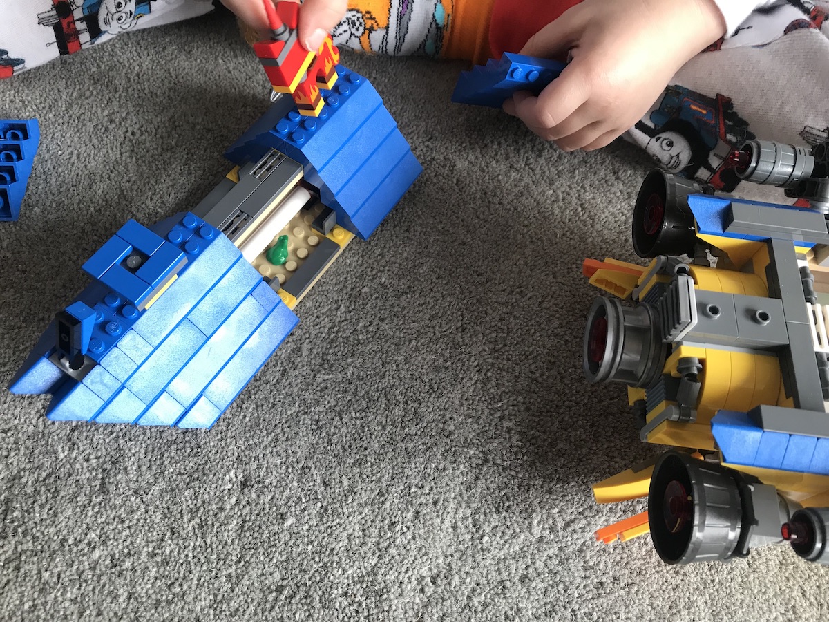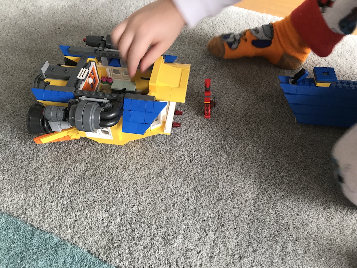 Für die Rakete braucht man sicherlich gute zwei Stunden, denn anders als beim LEGO DUPLO müssen die Steine richtig festgedrückt werden. Den Umbau zu Emmets Traumhaus haben wir dann an einem anderen Wochenende vorgenommen.