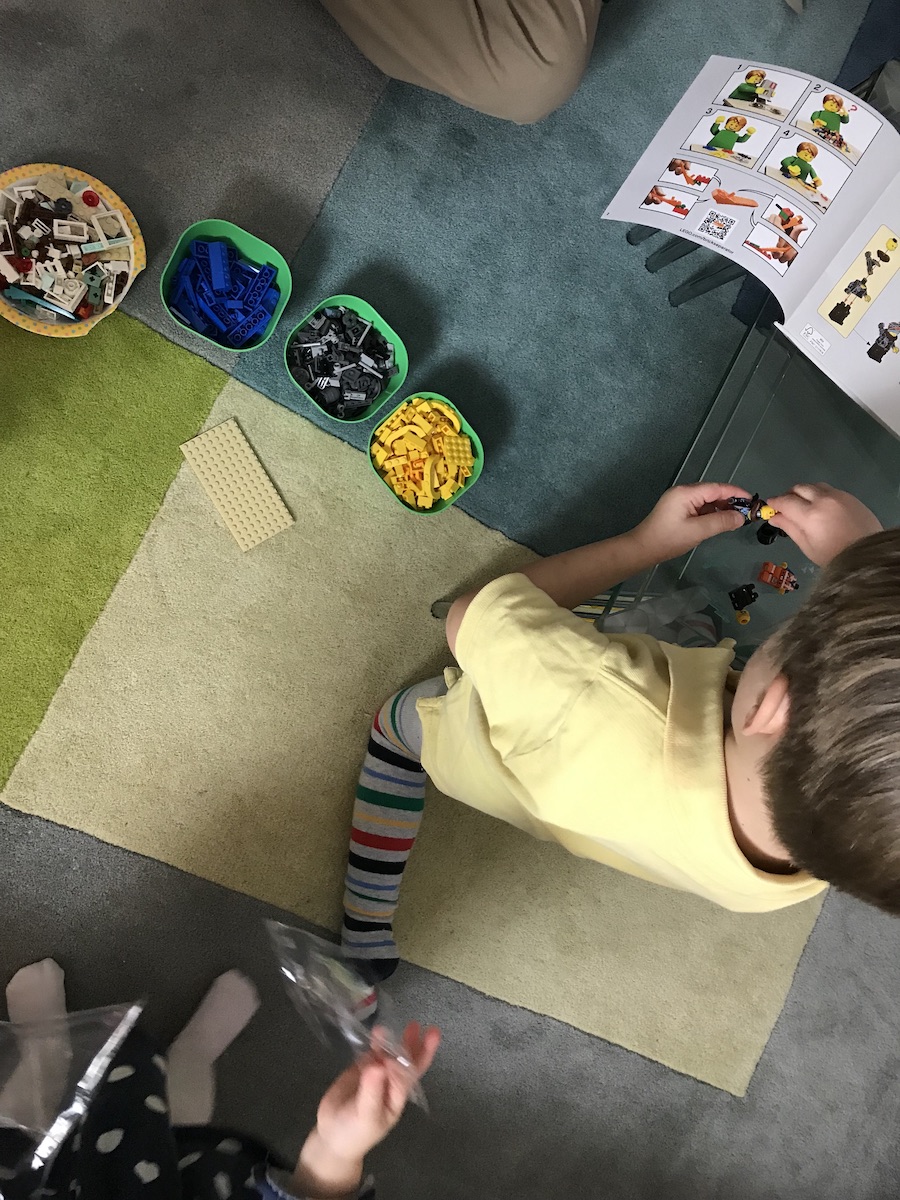 Das Set, welches wir zum bauen nutzen, ist Emmets Rettungsrakete und sein Traumhaus. Die Schritte sind sicher sehr aufwendig – zumindest für einen Vierjährigen, der nebenbei noch ein kleine Schwester hat, die dauernd mitmachen will. Wir haben es daher wie bei Aschenputtel gehandhabt und haben die LEGO Steine erstmal alle in Schüsseln sortiert: nach Farben. Das war eine gute Basis, um anfangen zu können.