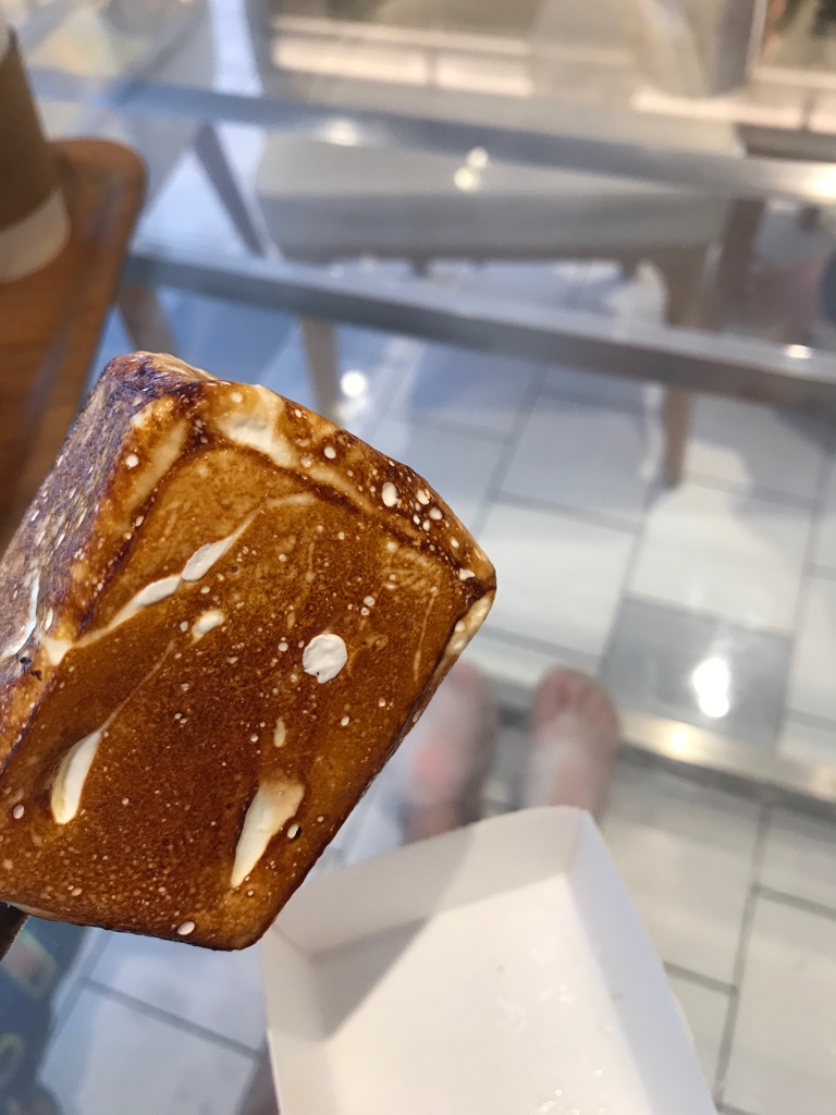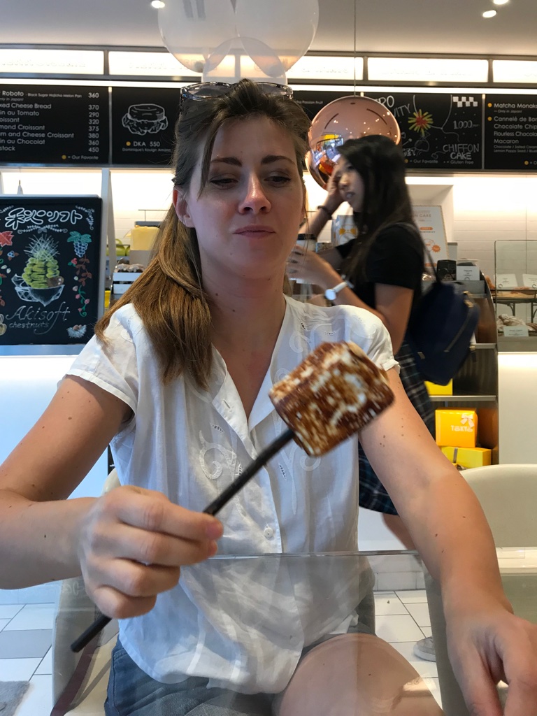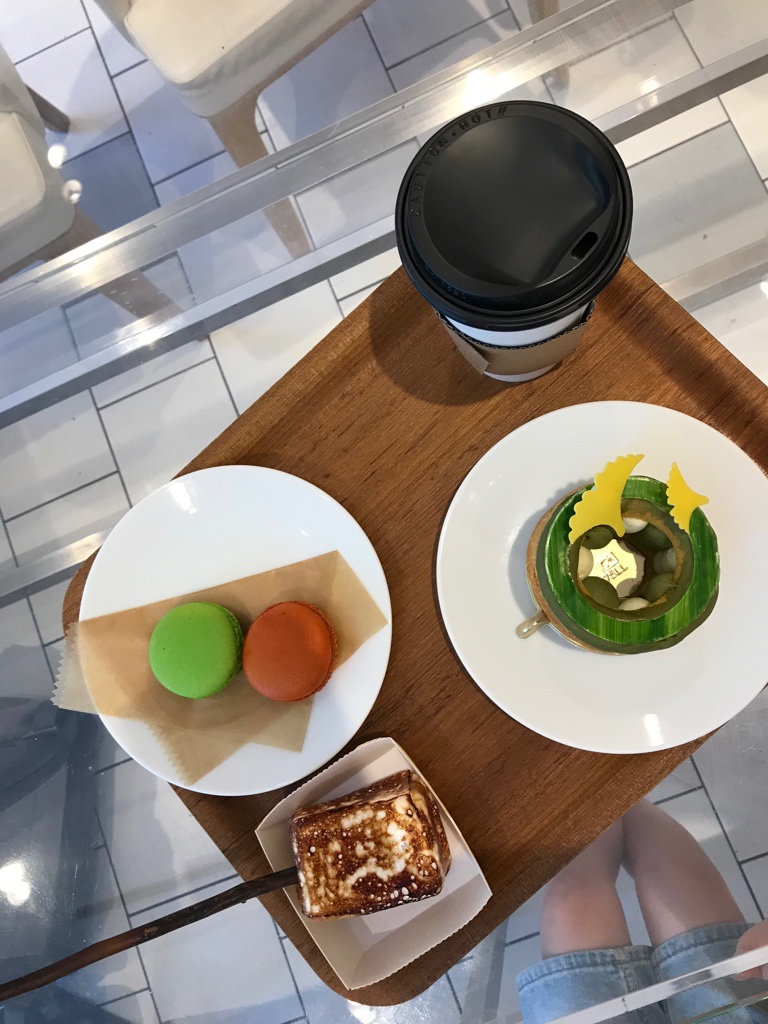 Nach dem Mittagessen schlenderten wir wieder über die Omote Sando zum Dominique Ansel. Kaffee ist bei mir eigentlich das einzige, was immer zu einer festen Uhrzeit in den Körper muss. Und obwohl wir grad Mittag gegessen hatten, wollte ich einen guten Kaffee trinken und zu was Süßem wollte ich auch nicht nein sagen.