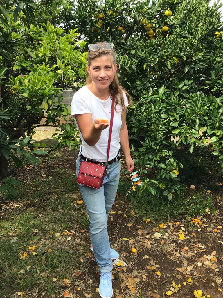 Für uns ging es weiter Richtung Norden, denn wir wollten Mandarinen ernten. Das ist eine Kindheitserinnerung von mir und ich habe bereits mit meinen Eltern – damals 1989 in Japan – Mandarinen geerntet.