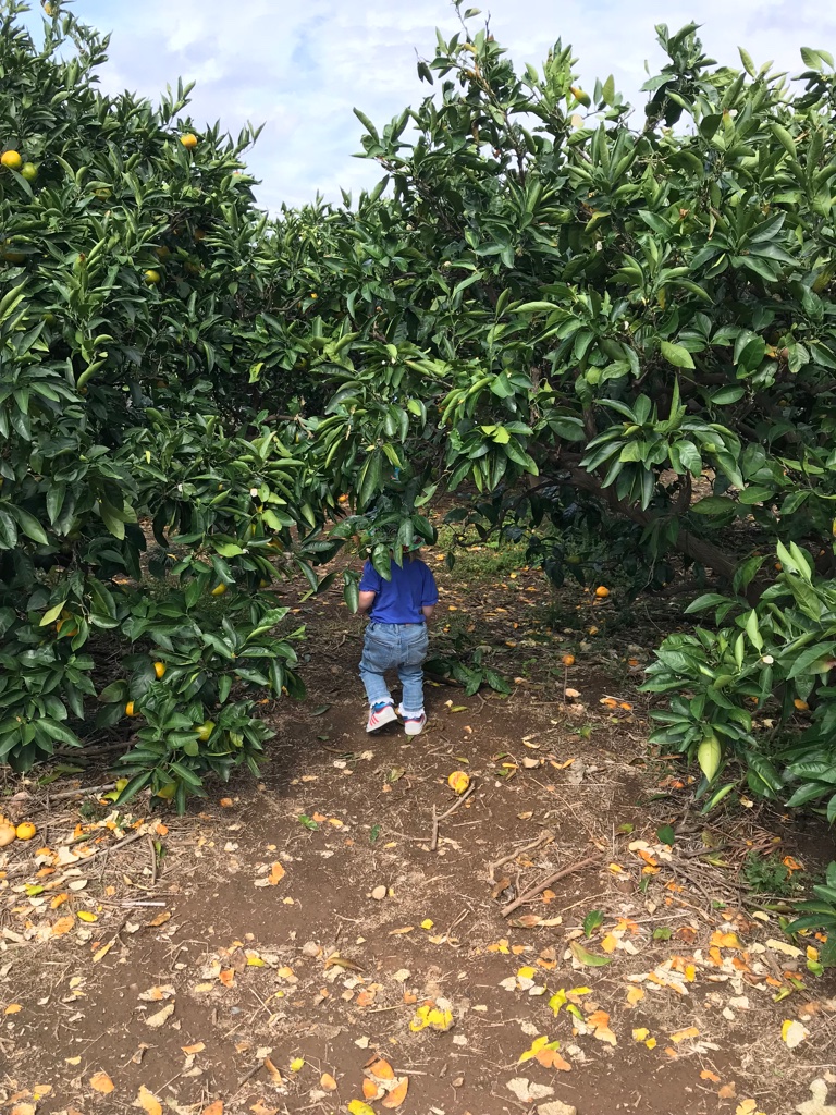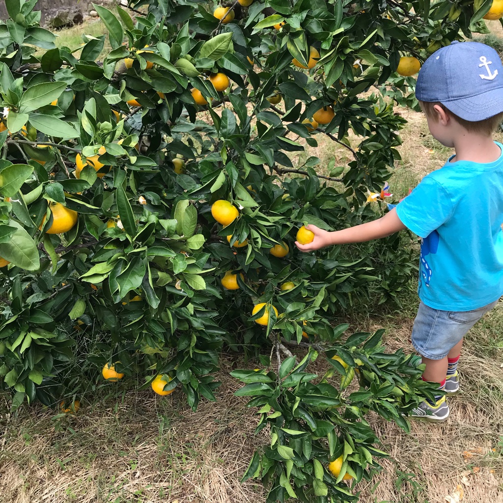 Diesmal hatten wir uns einen Ort ausgesucht, der ganz in der Nähe vom Meer Lag – an der Küste. Und Mandarinen zu ernten bedeutet eben auch ein wenig draußen sein und mit den Kids herumtollen. Kleiner Tipp meinerseits: immer mal gleich die Tüten oder Rucksäcke mitnehmen, wenn man Mandarinen ernten gehen will, dann erspart man sich den Weg zurück zum Auto. Wir hatten die Tüten offensichtlich nicht dabei und so blieb ich mit den Kindern und naschte fleissig Mandarinen. Ich kann nur sagen: mega lecker! Egal wie frisch und sonstwas das Obst auch manchmal in Deutschland in manchen Läden ist, nichts kommt an die frisch geerntete Qualität und Geschmacksintensität heran.
