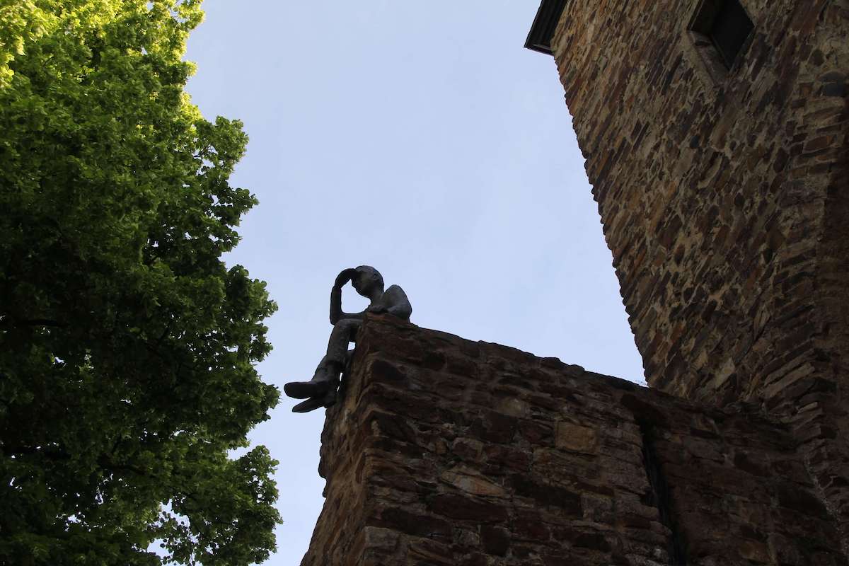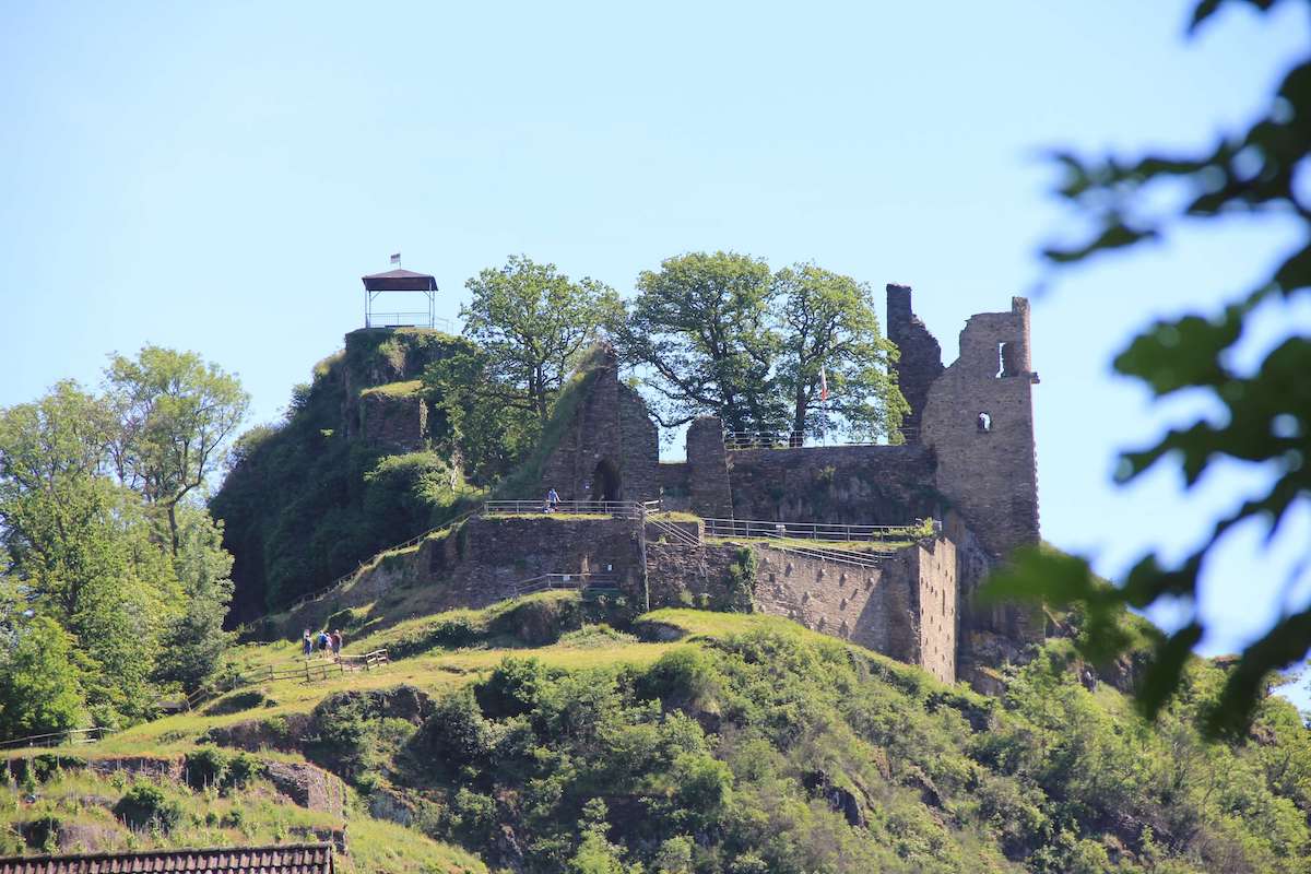 Die Grundmauern der Burg sind so weit erhalten, das noch ein Kellerraum komplett ist – dieser wird aktuell vom Förderverein als Lagerraum genutzt – und der Pavillon, der auf der Höhe des ehemaligen Verließ führt. Ein atemberaubender Blick, der sich von dort oben bietet. Da der Aufstieg recht steil ist, haben nur Junior und ich den Weg gewagt und die kleine Kaiserin ist mit meinem Mann auf dem Plateau im Schatten der Bäume geblieben. Das spannendste war für die Kinder jedoch nicht nur das herumlaufen auf der Burg, sondern auch die Nachrichten von Adelhild von Ahr als Teil des Familienabenteuers. Natürlich ist eine Burg wohl das ritterlichste, was es gibt und so konnten wir hier erfahren, was Adelhild mit dieser Burg verbindet und unsere eigene Geschichte schreiben.