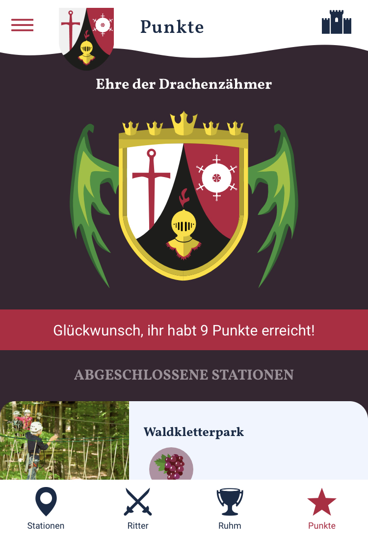 Natürlich waren die Kinder sofort hin und weg – vor allem Junior mit fünf Jahren. Wir meldeten uns am Abend vor der Reise auf der Webseite der Gastlandschaften an, suchten uns sofort einen Ritternamen aus und erhielten prompt einen Anruf. Junior und die kleine Kaiserin waren sofort hellauf begeistert als Ritter Reinhardt, der Rüstige, uns im Bund der Ritter begrüsste und die bevorstehende Mission erklärte. So erhielten wir die wichtigen Informationen, dass wir jede Sehenswürdigkeit mittels der Webseite abarbeiten konnten und so Punkte sammeln konnten, um im Ritterorden immer weiter nach oben zu steigen.