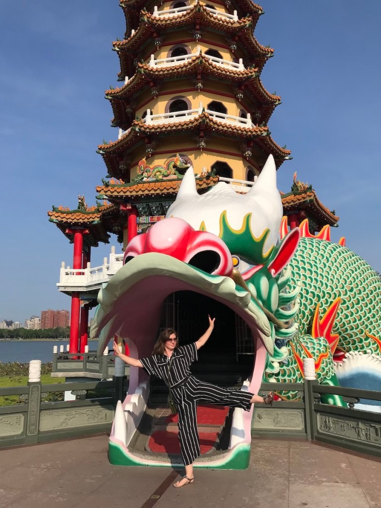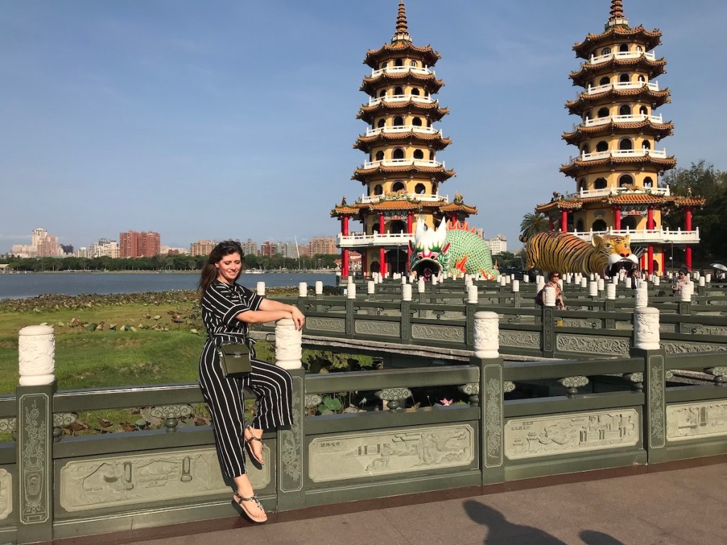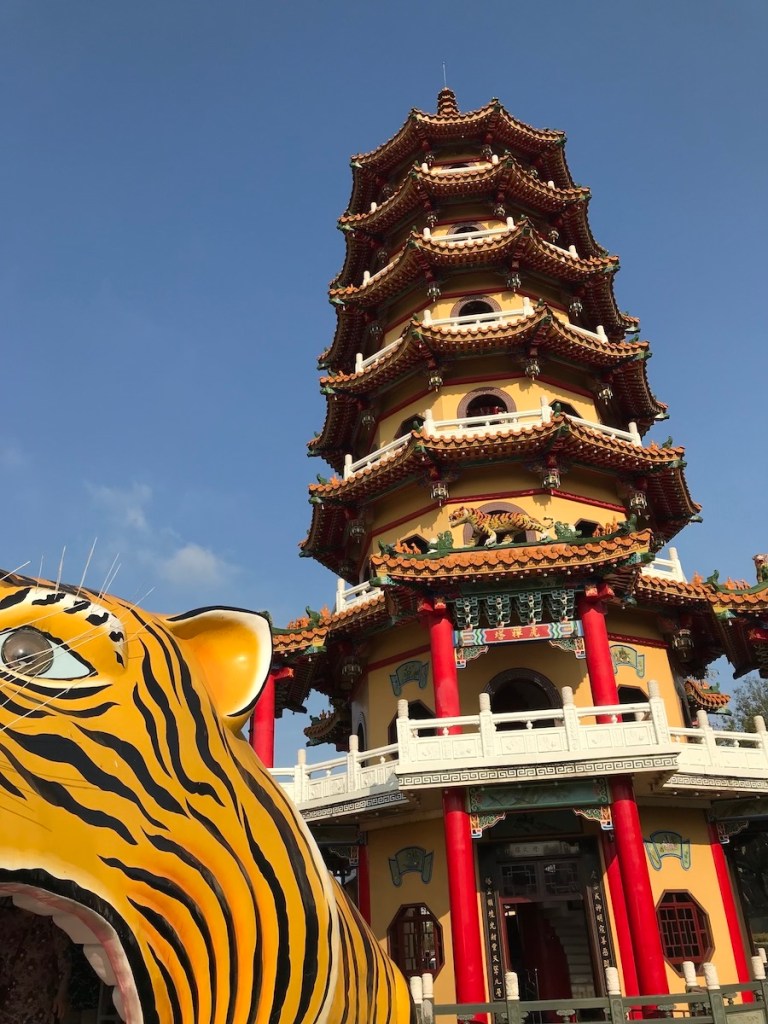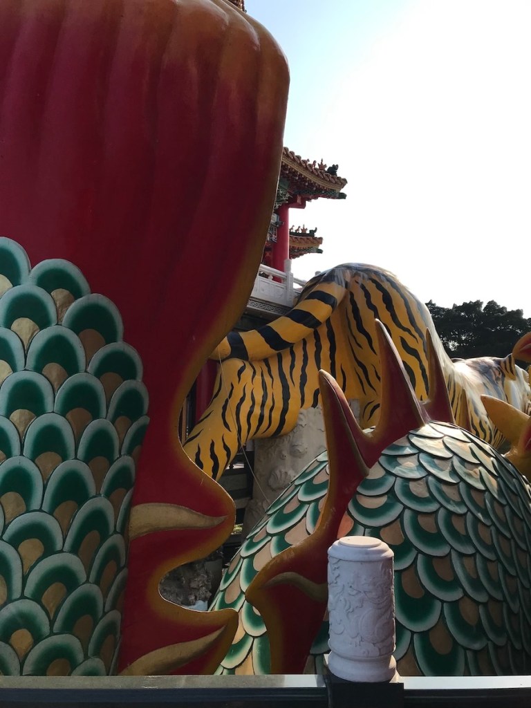 Die Tiger- und Drachenpagode ist nur eine der endlosen Pagoden in Kaohsiung und dennoch der einzige, den wir geschafft haben zu besuchen. Der Grund war die wirklich erdrückende Hitze und die extreme Feuchtigkeit dazu. So haben wir auch mit dem Gedanken gespielt, dass wir die Kinder bis zu den anderen Pagoden tragen beziehungsweise im Kinderwagen schieben, aber es war viel zu heiß. Und der Hinweg war das eine, wir hätten ja auch noch zurücklaufen müssen. Der Lotus Pond ist ein mittelgroßer Teich um den sich sehr viele wunderschöne Pagoden und Tempel reihen. Die Aussicht auf die Stadt und auch die Pagoden selbst sind wirklich besonders und gerne hätten wir noch mehr gesehen.