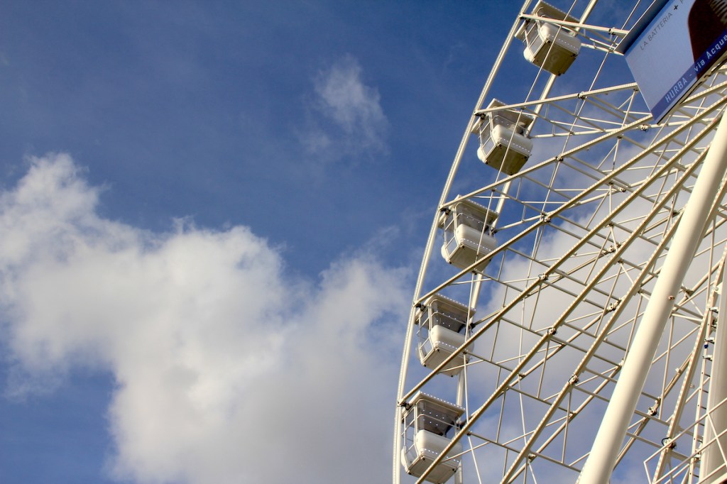Für uns ging es also nach Olbia und dort direkt auf ein Riesenrad. Die Fahrt war super schön – also mit der Aussicht. Als wir oben anhielten und der Wind echt durch die Türen pfiff, fragten wir uns schon, ob es überhaupt einen italienischen TÜV gibt und mir fiel ein, dass ich mal von einem umgestürzten Riesenrad gelesen hatte.